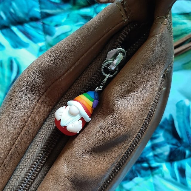 These gorgeous mini rainbow Gonks are just over 2.5 cm each with a lobster clasp,fits in to your palm of the hand or pocket.
